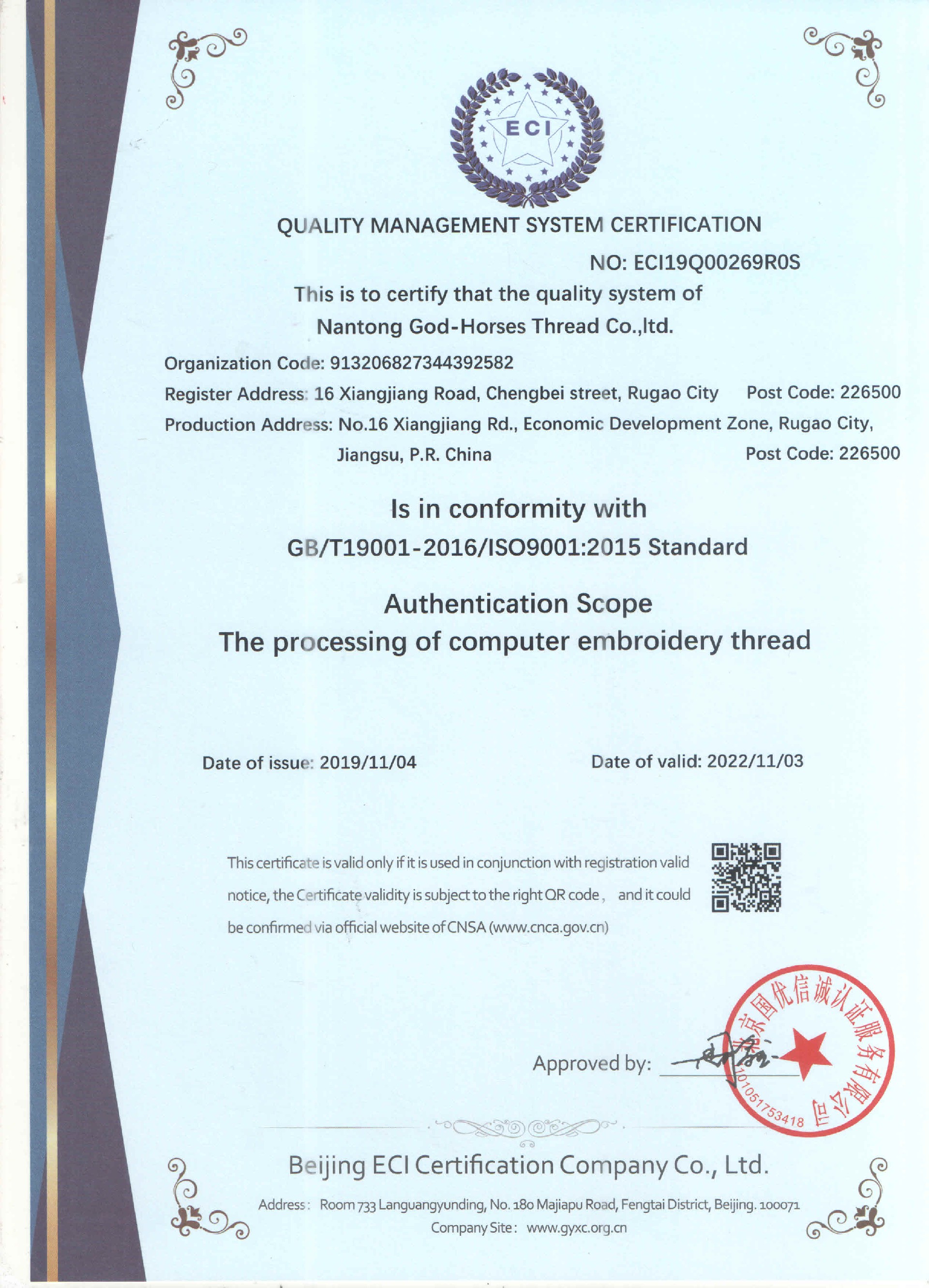 2011年公司通过了SO9001标准质量体系认证、SO14001环境管理体系认证